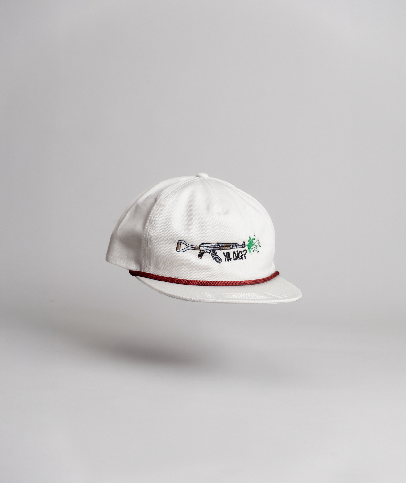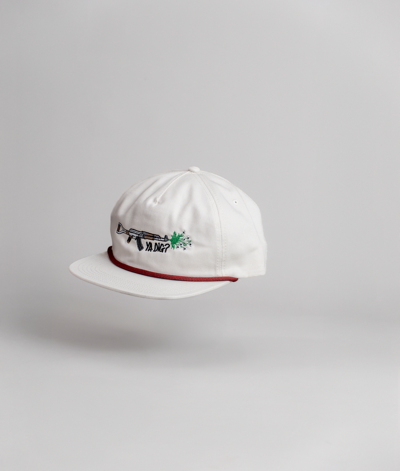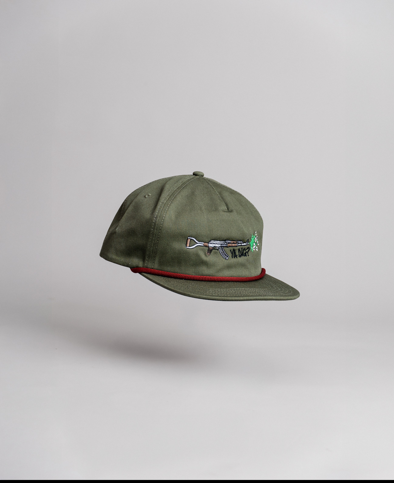 Show em you know ball with Goontape’s first ever 5-panel cap. The front features rich embroidery of a “gardener’s AKM” sporting a lovely bouquet coming from the muzzle and our classic JMAC Customs DITCH-DGR shovel stock.